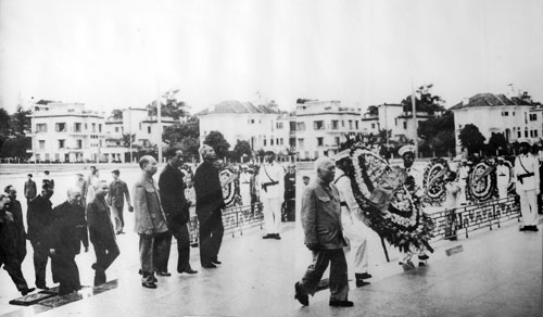 Lễ viếng chủ toạ Hồ Chí Minh trước tiên tại Lăng Sau lễ viếng, mọi người đều cảm thấy yên tâm, bởi Bác đang ở rất gần họ, luôn luôn ở bên họ trong mọi thử thách, mọi khó khăn, gian khổ của cuộc sống. Nông Văn Thành và Nguyễn Văn Rỉ là những chiến sĩ được vinh hạnh đứng tiêu binh trong phiên gác trước tiên trước Lăng hôm ấy, là những đội viên khởi đầu cho những hôm mai vô tận của các chiến sĩ vệ binh đứng canh cho Bác ngủ. Họ đứng nghiêm, mắt nhìn thẳng, tay nắm chặt thân súng, không một cử động nhỏ trong bất kể thời tiết, cảnh ngộ nào. Cứ 60 phút một lần những phiên đổi gác lại diễn ra nhịp nhàng, đẹp đẽ và trang trọng. Trước mắt họ là dòng người với nét mặt tư lự, buồn đau, đi từng bước một như một dòng chảy vô tận vào cửa Lăng, để rồi khi trở ra, mỗi người lại như được nhận thêm một vật gì đó ở con người Bác. Đón Bác về Lăng, Đoàn 69 phải cáng đáng hàng loạt công việc, vừa theo dõi, giữ giàng tử thi Bác, vừa phải đảm bảo an toàn tối đa cho vớ các trang thiết bị vận hành trong Lăng và giữ cho các lễ viếng được tổ chức nghiêm trang, đáp ứng nguyện vọng của đồng bào cả nước và bạn bè quốc tế - những công việc mà bản thân Đoàn 69 chẳng thể đảm nhiệm được hết. Xuất hành từ yêu cầu nhiệm vụ trong tình cảnh mới, ngày 28 tháng 12 năm 1975, Quân ủy Trung ương đã ra quyết nghị về việc tổ chức Đơn vị lính bảo vệ Lăng. Thực hành quyết nghị của Quân ủy, ngày 14 tháng 5 năm 1976, Bộ trưởng Bộ Quốc phòng đã ra quyết định thành lập Bộ Tư lệnh Bảo vệ Lăng chủ toạ Hồ Chí Minh, lấy phiên hiệu là Đoàn 969, do đồng chí Kinh Chi làm Tư lệnh, kiêm Chính ủy. Bộ Tư lệnh 969 có nhiệm vụ: - Trực tiếp chăm lo, giữ gìn thi hài của Bác. - Quản lý, dùng các thiết bị máy móc của các công trình kiến trúc ở khu vực Lăng. - Tổ chức gác danh dự và bảo vệ an toàn khu vực Lăng. - Hướng dẫn quần chúng. # Vào Lăng viếng Bác. Đến đây, Đoàn 69 đã kết thúc một tuổi lịch sử khôn cùng quang vinh của mình trong nhiệm vụ bảo vệ, giữ giàng thây Bác. Mười sáu năm qua, Đoàn đã tự lực, tự cường, vượt qua hết khó khăn này đến khó khăn khác, hoàn tất xuất sắc một sứ mệnh cao cả và linh mà Đảng, Chính phủ và nhân dân đã uỷ thác: Trong bất kể tình huống nào cũng phải gìn giữ vẹn tròn thây Bác. Ngay sau khi có quyết định thành lập Bộ Tư lệnh 969, Đoàn 69 cũng được lệnh tách riêng bộ phận tổ y tế đặc biệt, thành lập Viện 69 do đồng chí Nguyễn Gia Quyền làm Viện trưởng. Cùng đứng chung trong đội hình Đoàn 969, còn có Đoàn 275 làm nhiệm vụ gác danh dự và bảo vệ Lăng, Đoàn 195 quản lý vận hành các thiết bị kỹ thuật của Lăng, Đoàn 295 kiến trúc, xây dựng và Đoàn 395 làm nhiệm vụ tu bổ máy móc, thiết bị. Việc chi tiết Bộ Tư lệnh 969 ra đời đánh dấu một bước phát triển quan yếu của các lực lượng tham dự bảo vệ và gìn giữ thi thể Bác. Từ những đơn vị nhỏ lẻ, làm một số nhiệm vụ, tiến tới thành lập Đoàn 69, rồi Bộ Tư lệnh 969 là cả một quá trình phấn đấu không mệt mỏi của các cán bộ, chiến sĩ được phục vụ bên Bác. Đoàn 969 ra đời, lịch sử của những chiến sĩ làm nhiệm vụ giữ giàng xác Bác bước sang một trang mới, vinh hạnh nhiều hơn nhưng trách nhiệm cũng nặng nề hơn. 3. Sang hơn 30 năm gìn giữ xác Bác và 25 năm bảo vệ, quản lý vận hành Lăng, Đoàn 969 đã hoàn tất xuất sắc nhiệm vụ mà Đảng, Nhà nước và dân chúng phó thác. Những truyền thống quang vinh của quân đội đã được Đoàn củng cố, xây đắp và phát huy với những nét đặc trưng của một đơn vị đặc biệt, làm một nhiệm vụ đặc biệt. Truyền thống vẻ vang đó được khái quát trong 16 chữ: "Trung hiếu chu toàn, kết đoàn giao kèo, tự lực tự cường, chủ động sáng tạo" và được miêu tả ở những nét tiêu biểu: - Với tấm lòng tôn kính, tin yêu và đời đời biết ơn Bác, cán bộ, công viên chức đội viên trong đơn vị luôn coi nhiệm vụ bảo vệ, giữ gìn thi hài Bác và công trình Lăng của Người, tổ chức tiếp đón đồng bào và khách quốc tế đến viếng Bác là nhiệm vụ hết sức nặng nề và quang vinh mà Đảng, Nhà nước và dân chúng đã tin tưởng trao cho, nên trong bất kỳ cảnh ngộ nào, cũng mô tả lòng áp vô hạn với giang san, với Đảng, với sự nghiệp giữ gìn tuyệt đối an toàn và lâu dài thi hài Chủ tịch Hồ Chí Minh, công trình Lăng của Người, xoành xoạch tận tụy phục vụ quần chúng. #. - Nêu cao ý chí độc lập tự chủ, tự lực, tự cường, cán bộ, công viên chức, đội viên trong đơn vị đã hôm mai ra công phấn đấu, vượt mọi khó khăn gian khổ, làm việc lặng thầm, lao động chuyên cần, dũng cảm và chủ động sáng tạo, không ngừng vươn lên để tự phụ trách nhiệm vụ mang tính khoa học chuyên ngành, chưa có tiền lệ ở Việt Nam và hoàn tất mọi nhiệm vụ được giao. - Là đơn vị